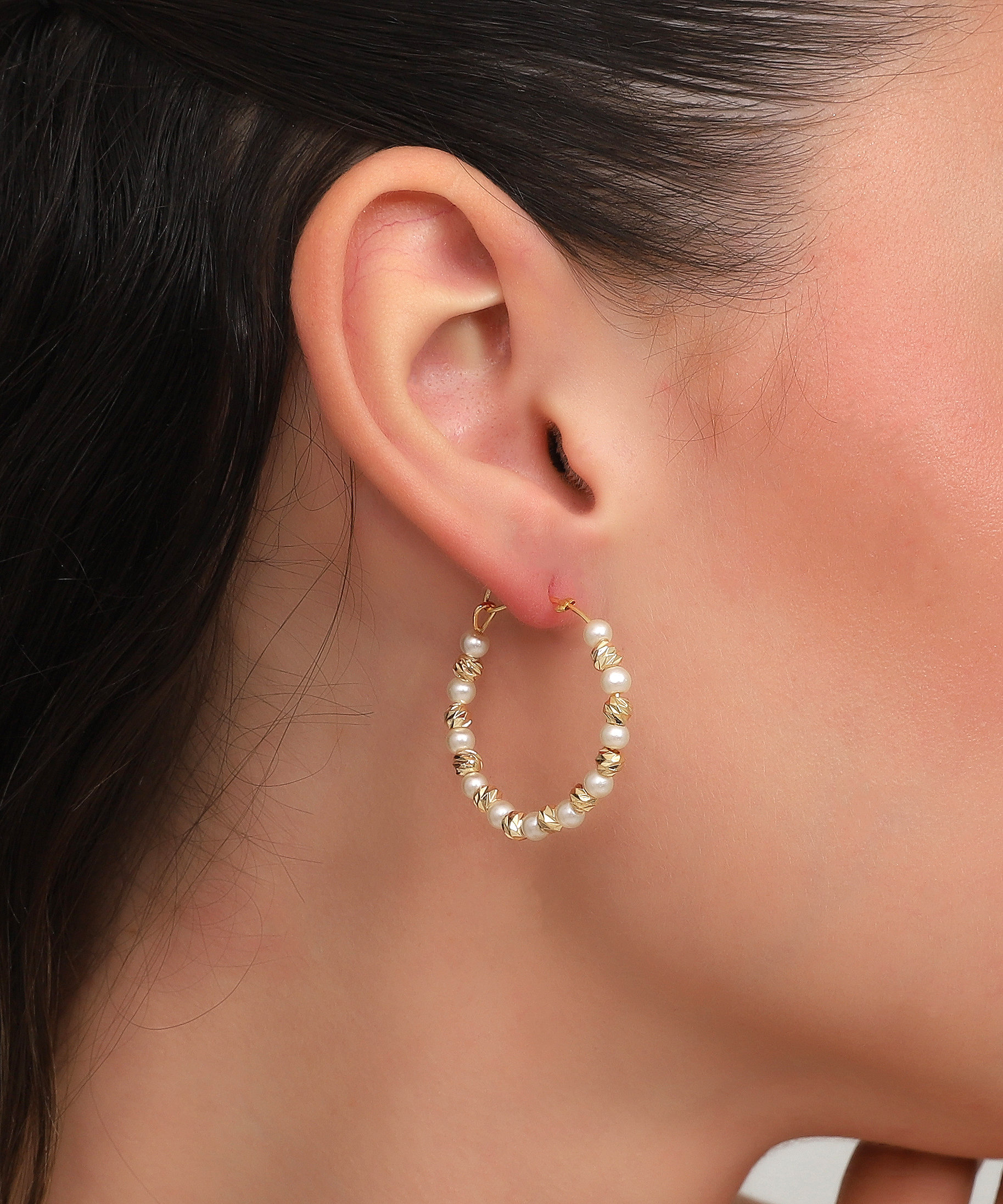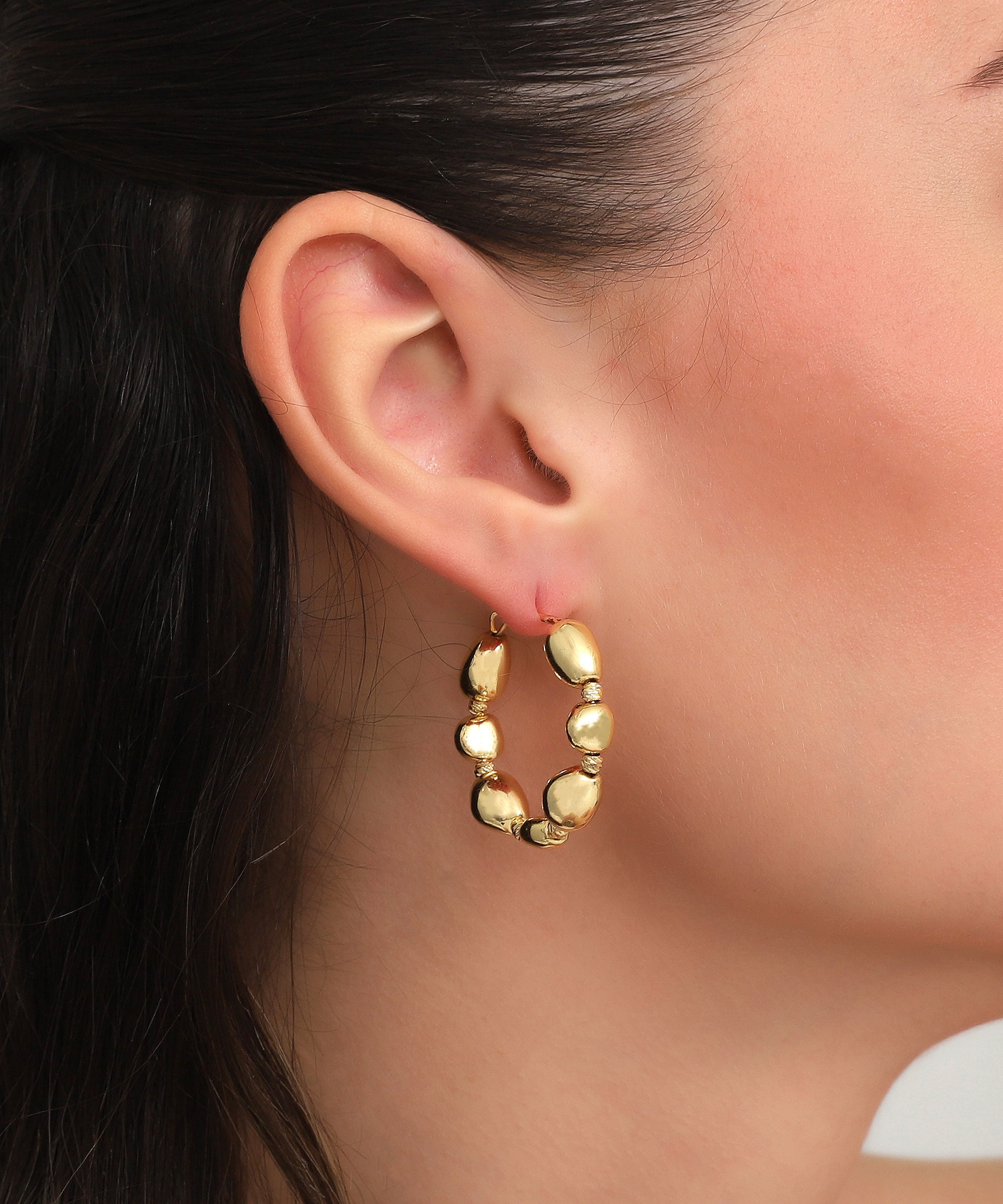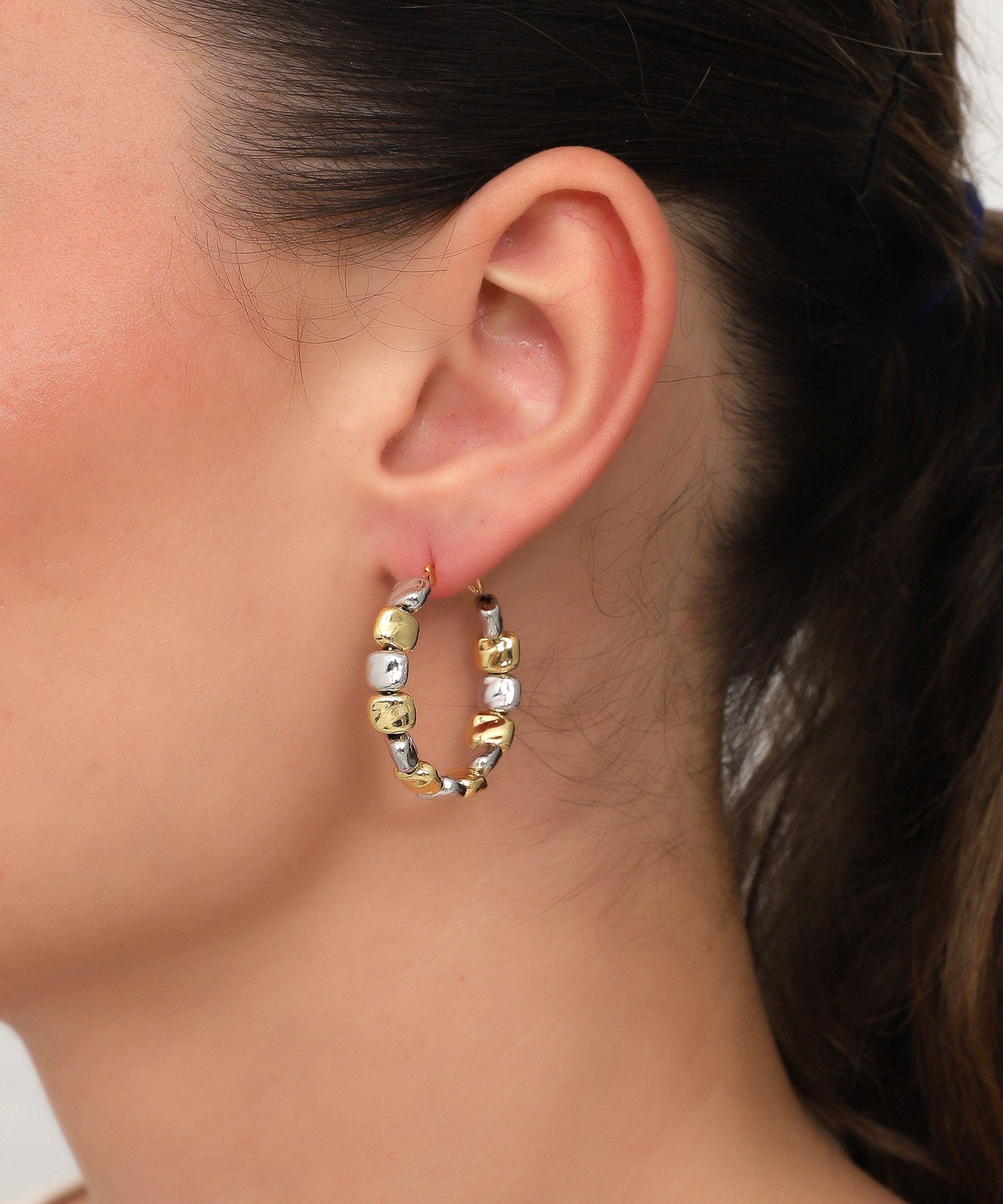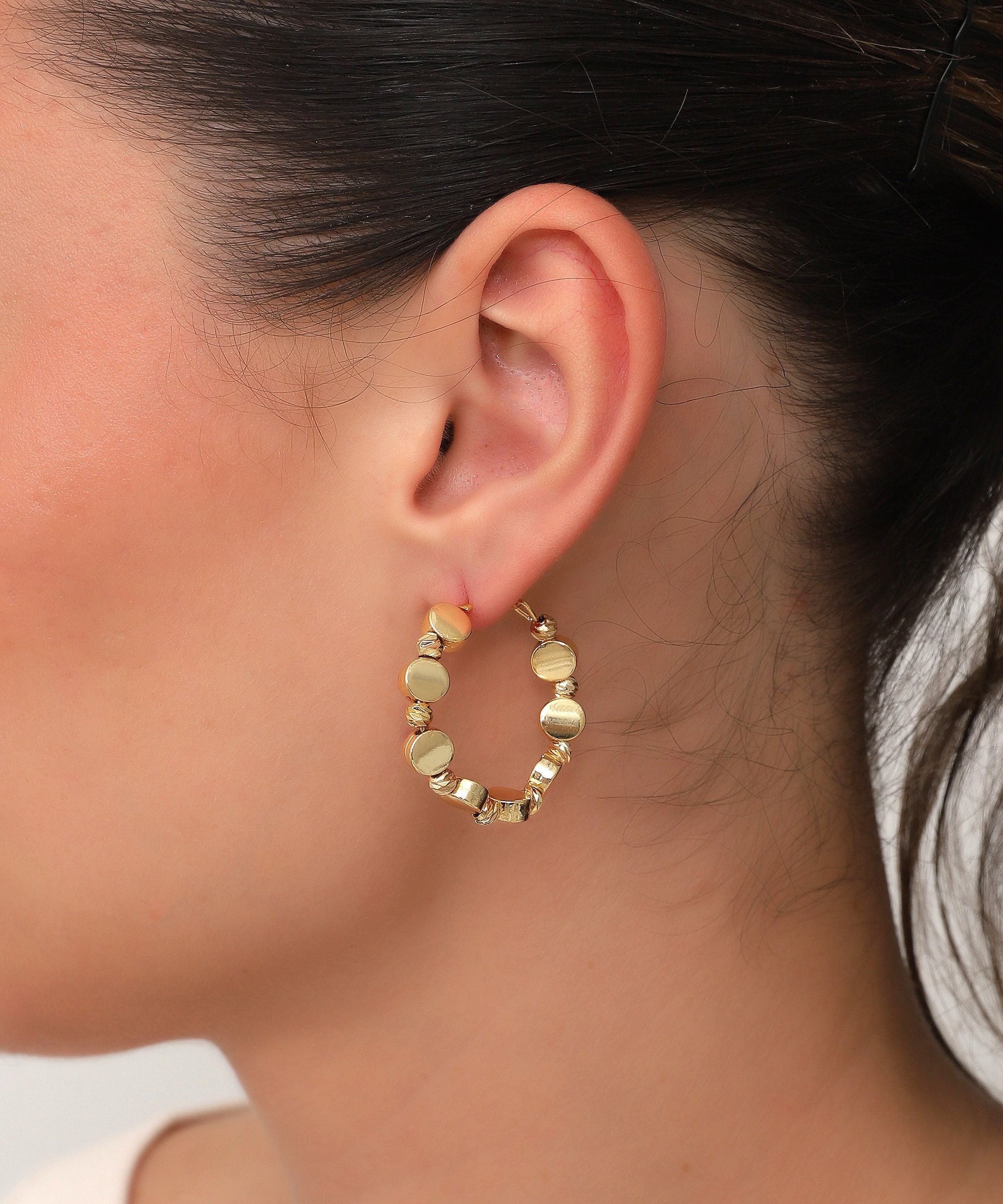 Gold Circle Hoop Earrings • Non Tarnish Jewelry • Waterproof Earrings • Best Gift for Her • Cube Chain Earrings • Vintage Wedding Jewelry