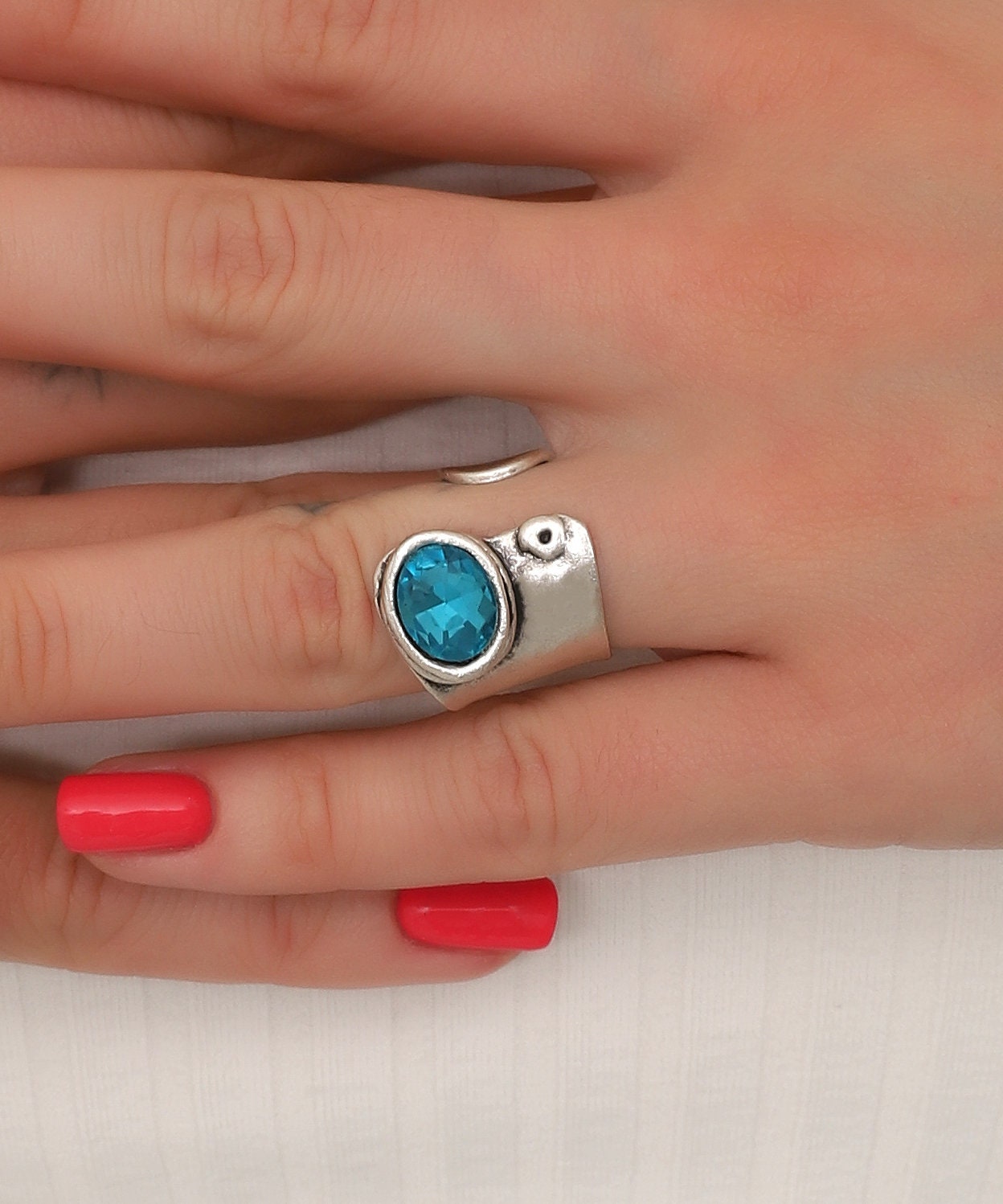 Antique Silver Turquoise Bypass Ring: Fidget Spinner, Anxiety Jewelry