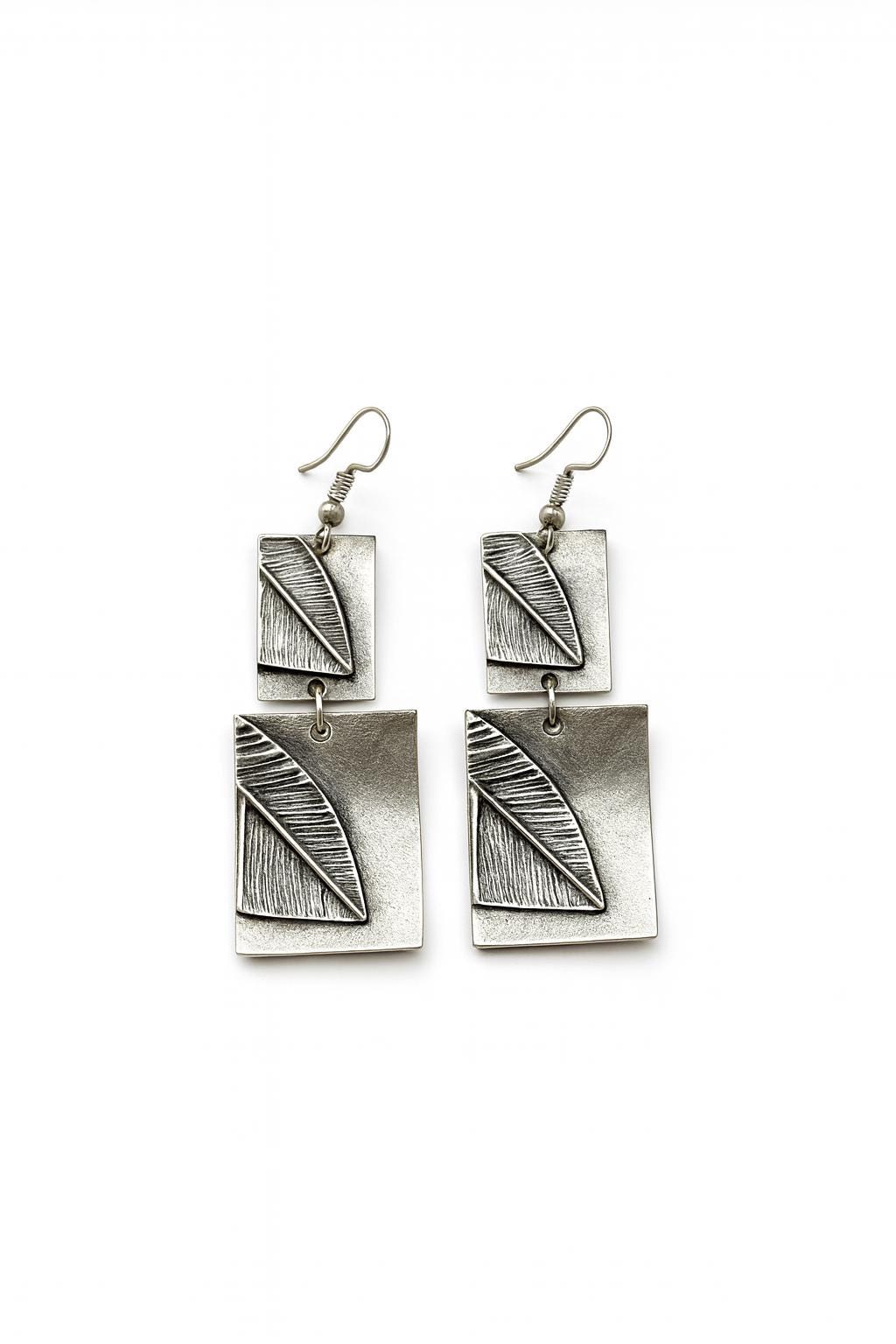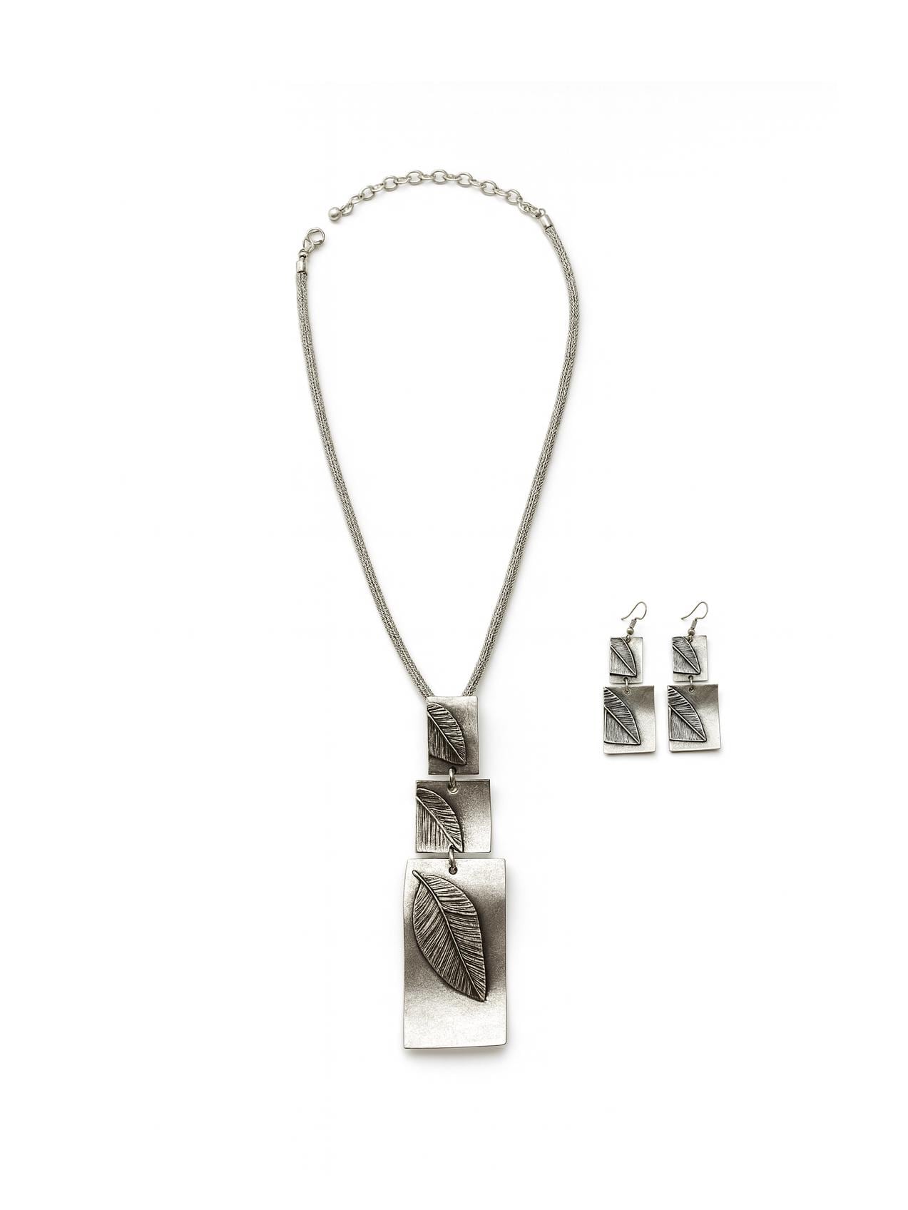 ► Antique Silver Leaf on Rectengular Hammered Jewelry Set ► Natural Ethnic Hand Crafted ► Fashion Jewelry gift for Women