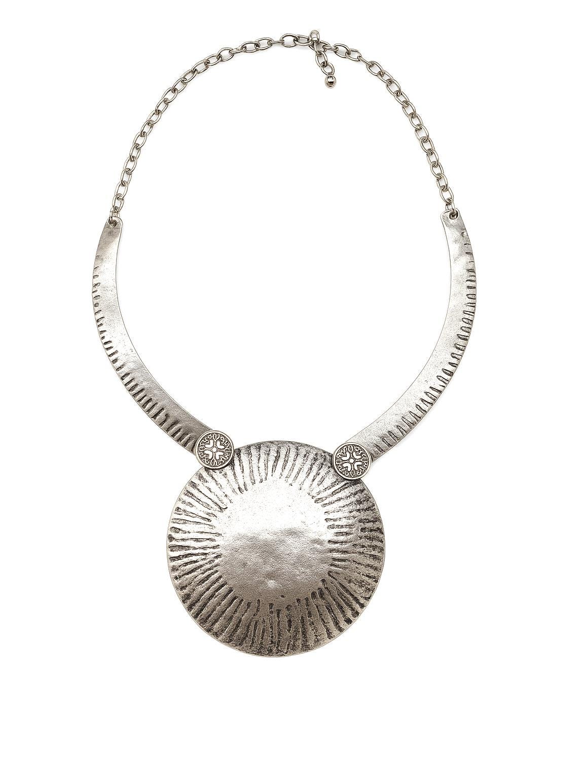 ► Antique Silver Hummered Circle Statement Necklace ► Natural Ethnic Hand Crafted ► Fashion Jewelry gift for Women