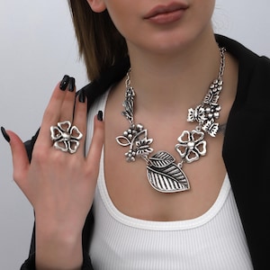 ► Antique Silver Spiral Statement Necklace ► Natural Ethnic Hand Crafted ► Fashion Jewelry gift for Women