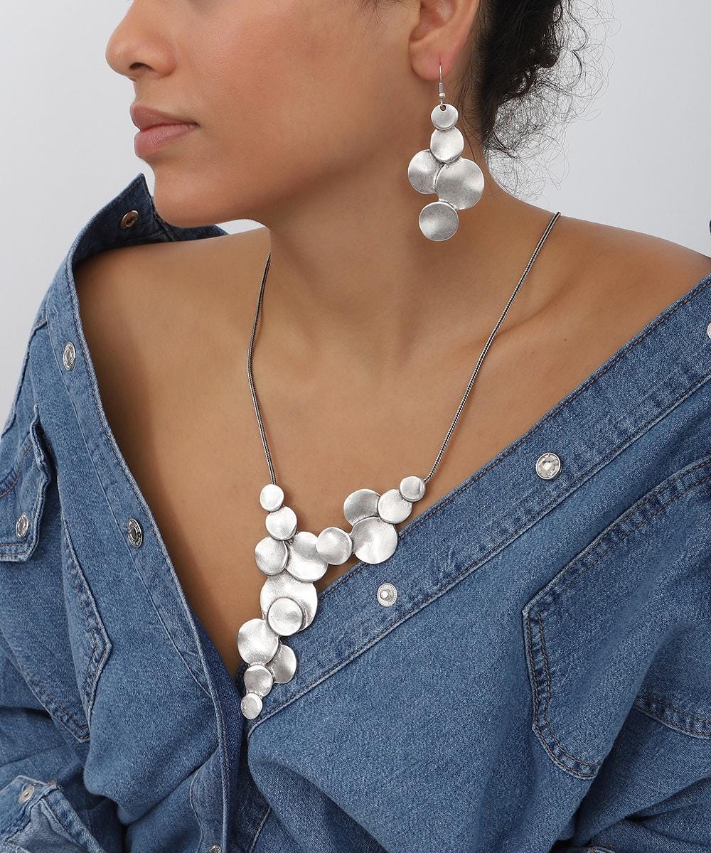 ► Add a touch of vintage charm to your outfit with this stunning Antic Style Hammered Circle Necklace & Earrings Set. Handcrafted with love and attention to detail, this unique piece will surely become a staple in your jewelry collection. Perfect for everyday wear or special occasions, this necklace is a timeless accessory that will elevate any look. Treat yourself or surprise a loved one with this exquisite necklace today!