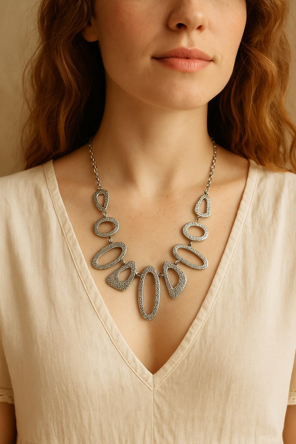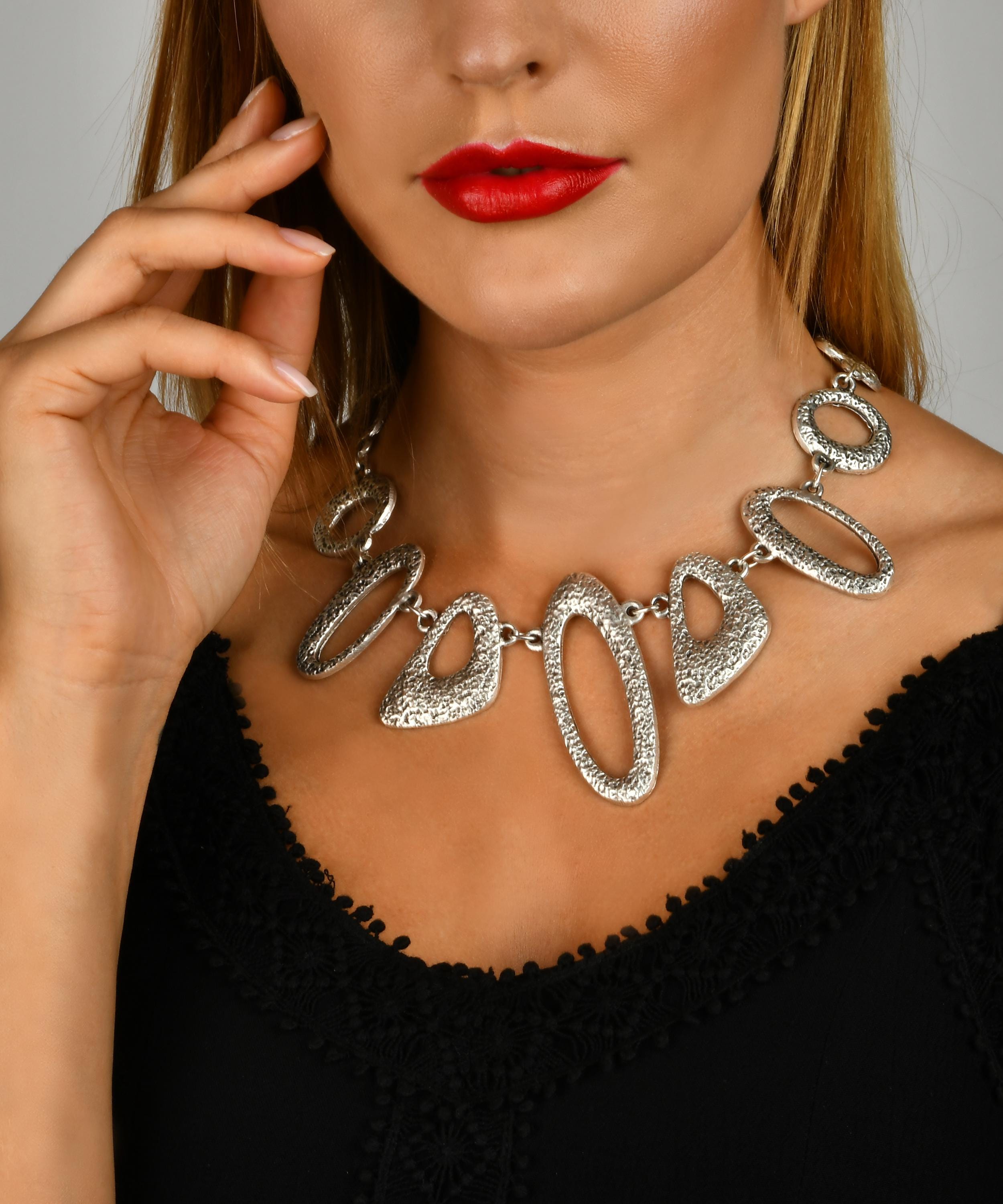 ► Antique Silver Circles Statement Necklace ► Natural Ethnic Hand Crafted ► Fashion Jewelry gift for Women
