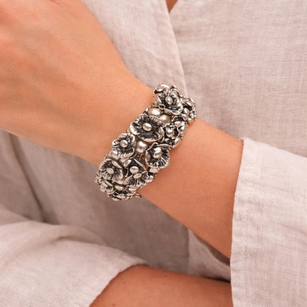 ► Silver Plated Women Flower Design Bracelet. Special Bohemian Design.. ► Halloween jewelry to complete your spooky ensemble..