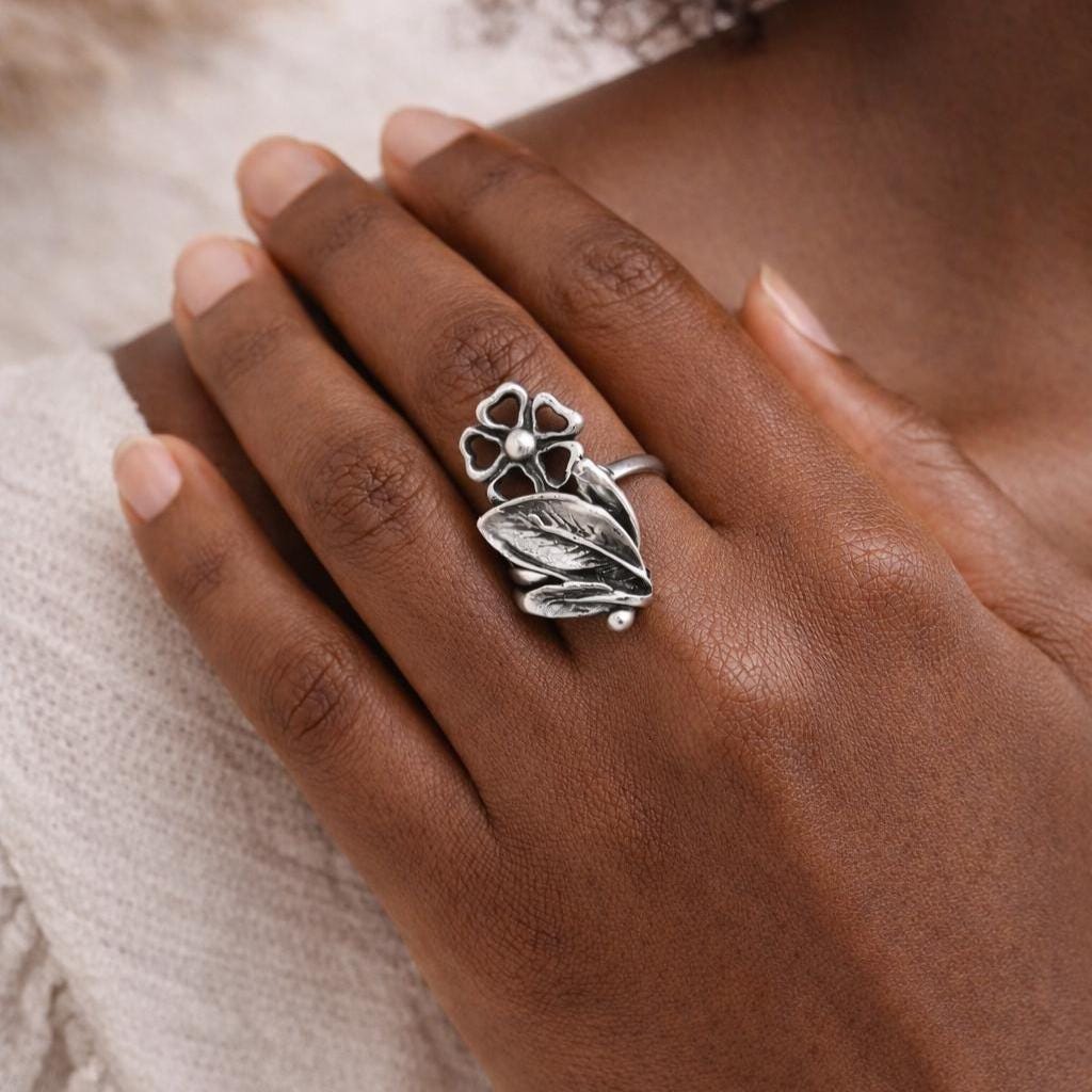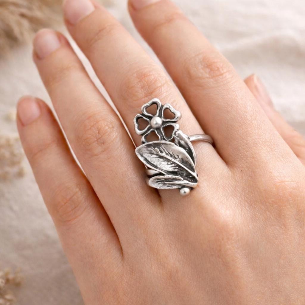 ► Embrace timeless charm with this Antic Silver Flower Design Ring. This unique piece features a free-size design, perfect for any finger. Handcrafted with love, it's a symbol of everlasting affection. Add a touch of romance to any outfit with this stunning ring.