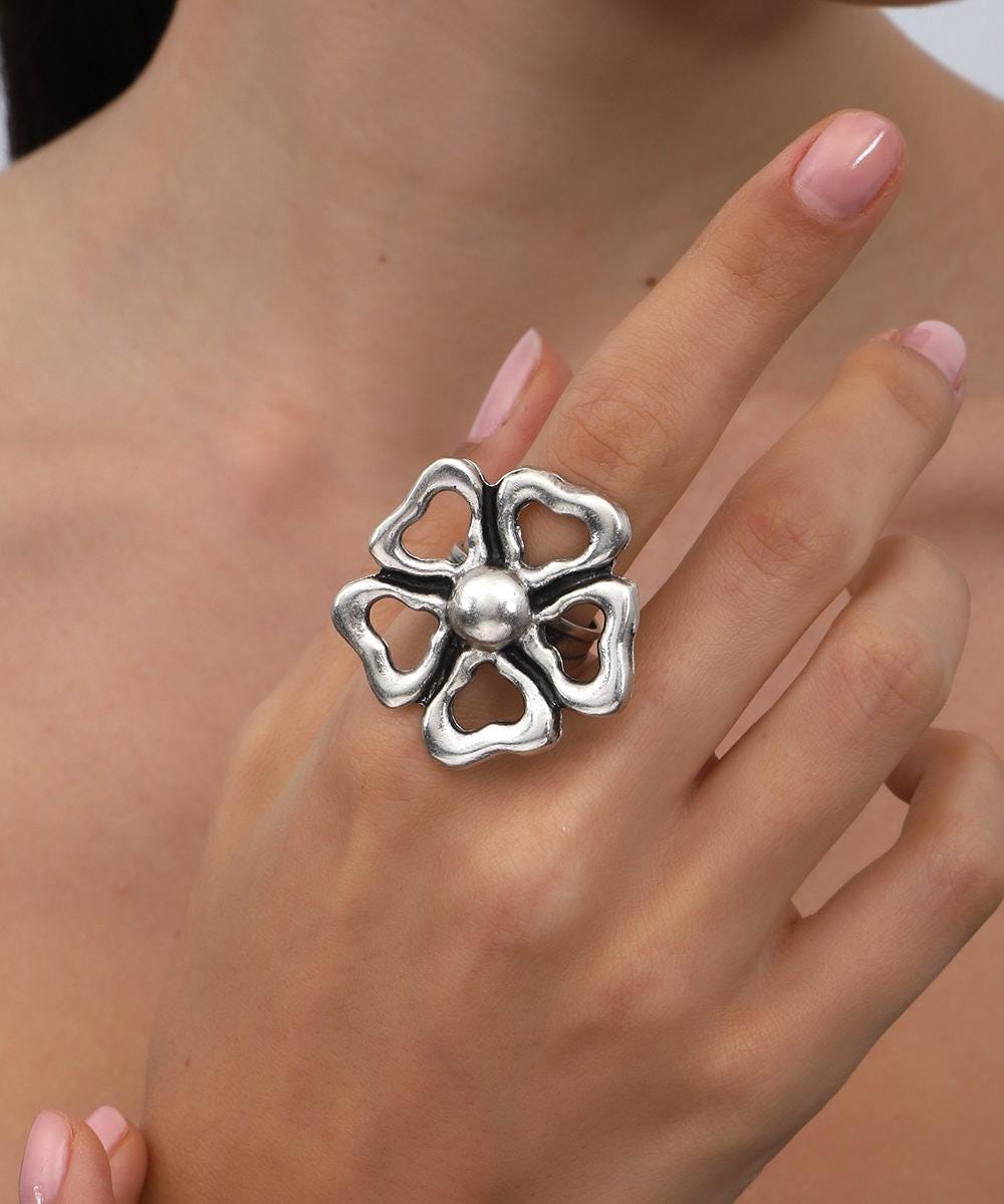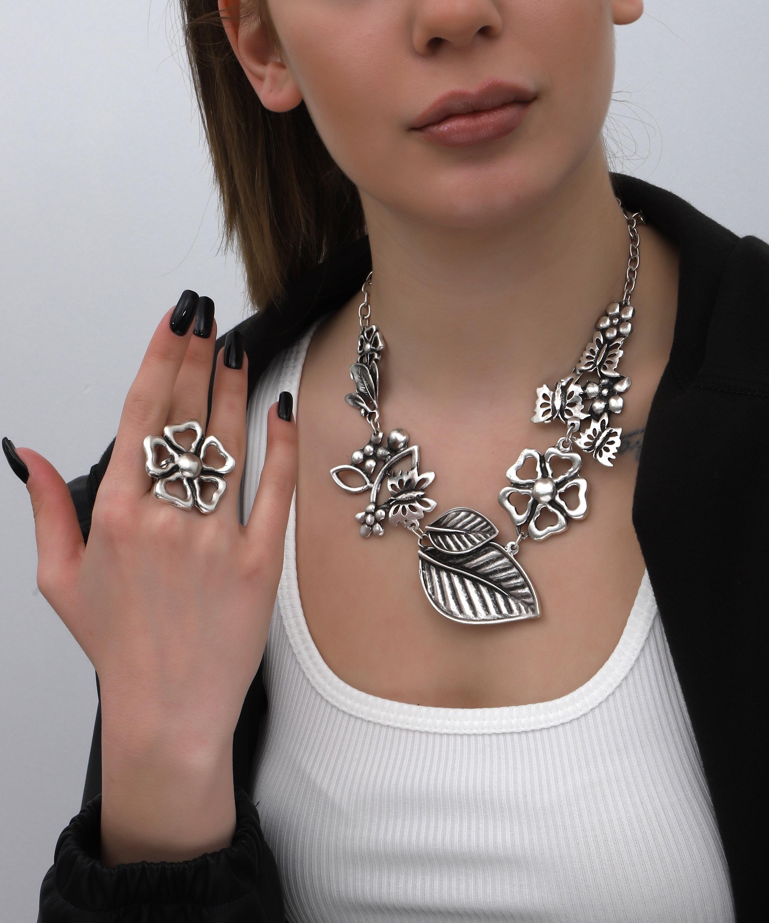► Antique Silver Floral Statement Necklace & Ring ► Natural Ethnic Hand Crafted ► Fashion Jewelry gift for Women